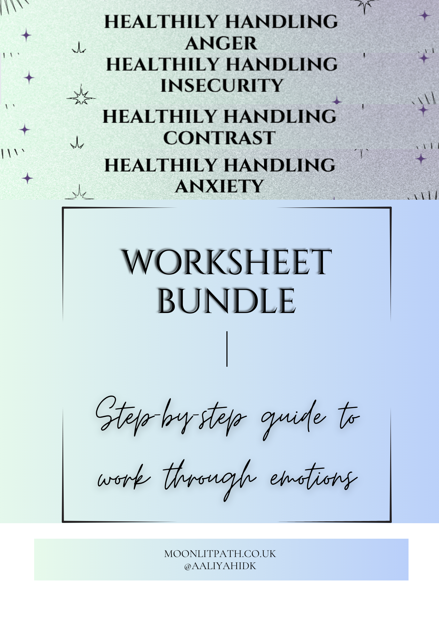 This bundle covers experiences of contrasting moments, anxiety, insecurity and anger. Purchase as an entire bundle at a discount of 15%. Each worksheet teaches you how to: