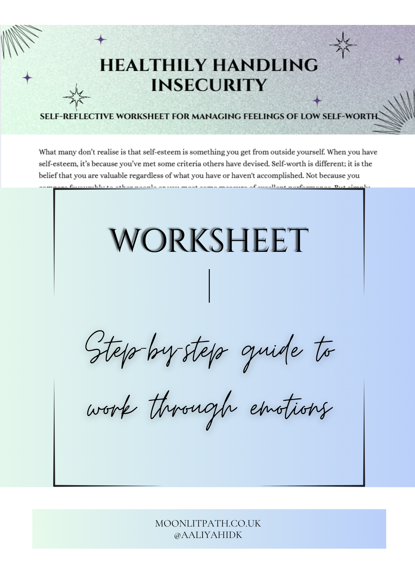 What you receive: A targeted worksheet that provides different techniques as well as self-reflections about the root of insecurity and various outlets to reframe your perspective.